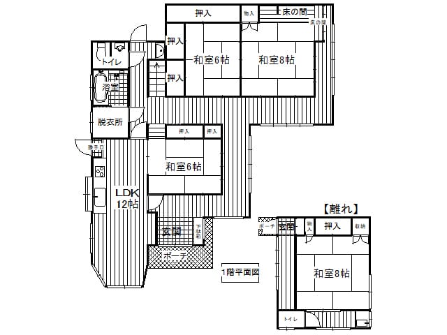天竜峡インター近く 本宅(オール電化2階建5LDK)+離れ(平家建)+作業所(プレハブ2階建)