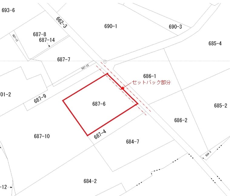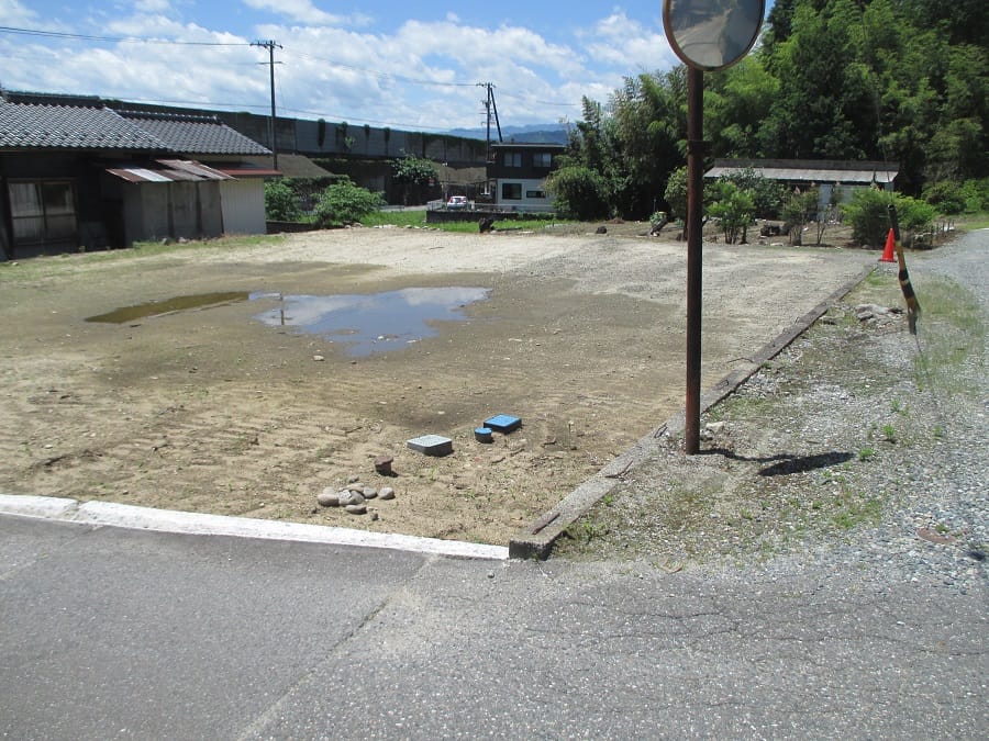 | 備考 | ・前面道路は建築基準法第42条2項道路の為、道路後退(セットバック)が必要。・本物件の用途地域は、第一種低層住居専用地域と第一種住居地域の二つの地域にまたがるため制限ごと(用途・高さ・防火・建ぺい率・容積率・等)に適用が異なります。・雨水は、道路反対側の道路側溝へ放流する為、排水管を道路横断して布設するための工事と飯田市への道路占用許可が必要です。 |