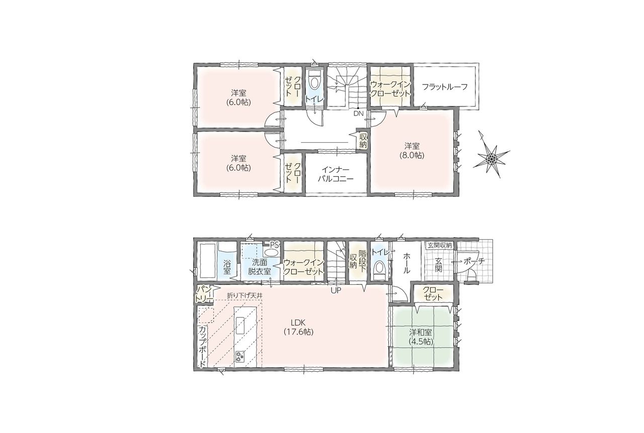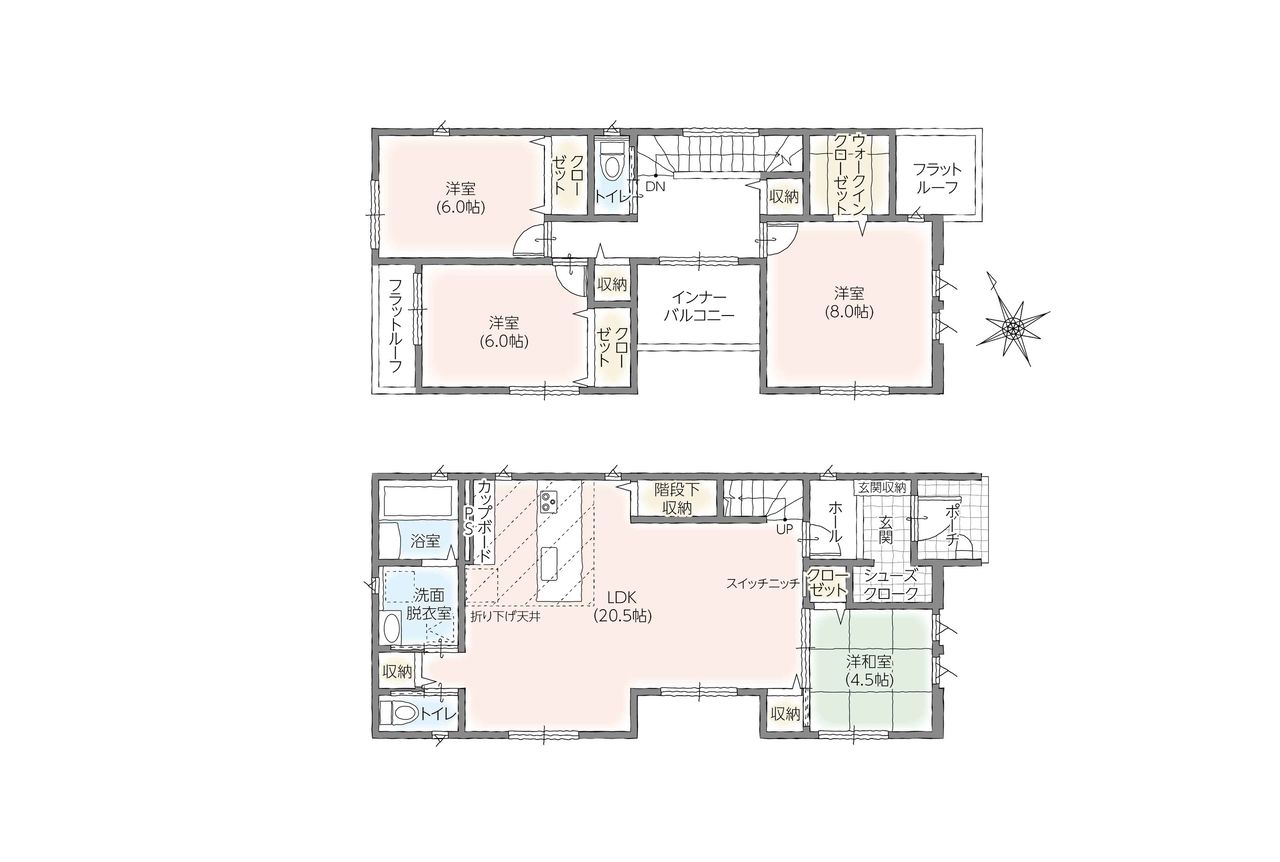 駐車場スペース広々!大家族や二世帯住宅にぴったりの間取り!それぞれのお部屋に収納があり、プラーベート空間も確保。 シェアハウス、社宅、グループホーム、多目的利用可!
